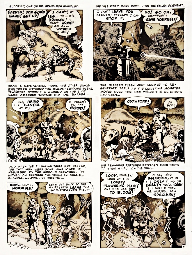 The story "The Spawn of Venus," as drawn by Al Feldstein, appeared in Weird Science #6. Legend has it that this version, redrawn by Wally Wood, was intended for a 3-D comic that was never published. E.C. released only two 3-D issues, E.C. Classics and The Crypt of Terror in 1954, before the fad faded.
